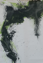 Le gestuel, avec douceur ou avec force, devient alors l’expression d’un moment présent. Pour laisser l’entière place à l’esprit, Artno traduit son imaginaire par l’abstraction. Il ne peut y avoir d’image figurative, car son langage est signe et trace. Pour créer une abstraction, Artno joue sur l’équilibre des traits, des espaces vides et de la transparence des traces. Posés au sol, ses grands tissus lui permettent de donner toute l’amplitude nécessaire à son corps pour obtenir le gestuel. Il peut ainsi frapper ou glisser les poils de ses pinceaux plus ou moins chargés en peinture, sur ses tissus au rythme de la musique rock présente dans ses créations. Artno s’exprime principalement avec le noir, qui lui permet de révéler toute la force de son énergie. Il y aime ses dualités, entre lumière et pénombre, autorité et rébellion. Qu’elle soit sombre ou lumineuse, Artno communique son histoire à chacune de ses œuvres.