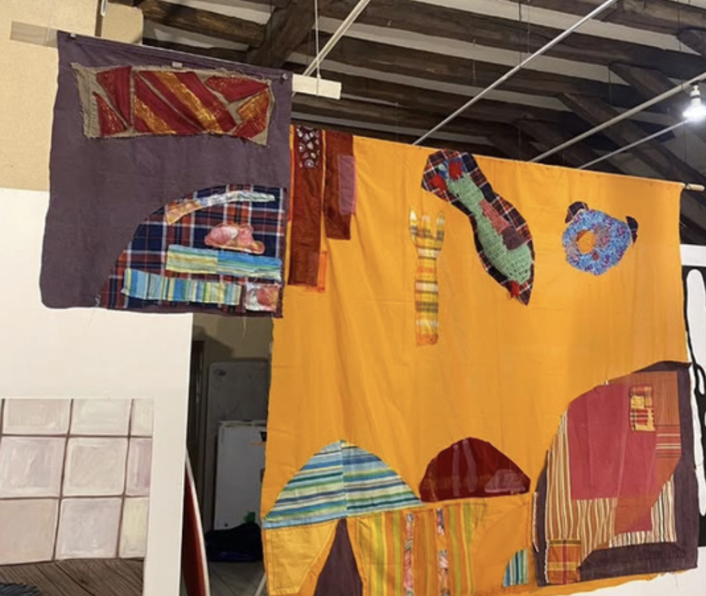 Elle y expérimente avec l'illustration jeunesse et les installations textiles.