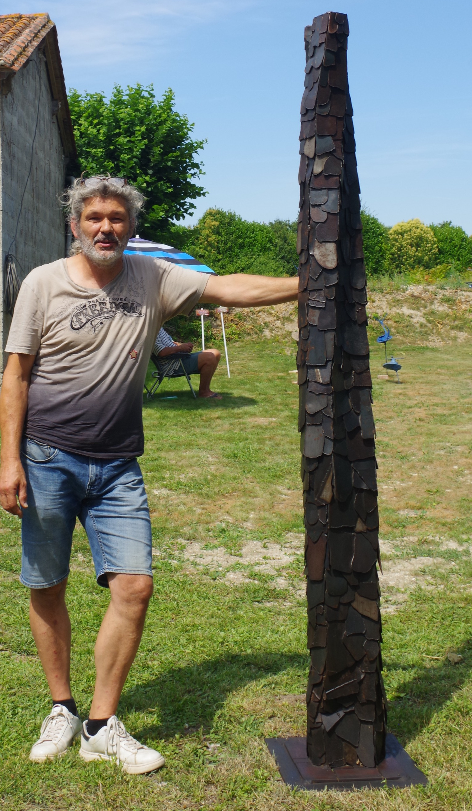 Mes sculptures nous projettent dans un temps sans temporalité, un espace d'émotion reliant à notre humanité des objets étranges qui s'amalgament ensemble sans aucune utilité immédiate, évoquant pourtant un passé toujours présent et un présent issu du futur.